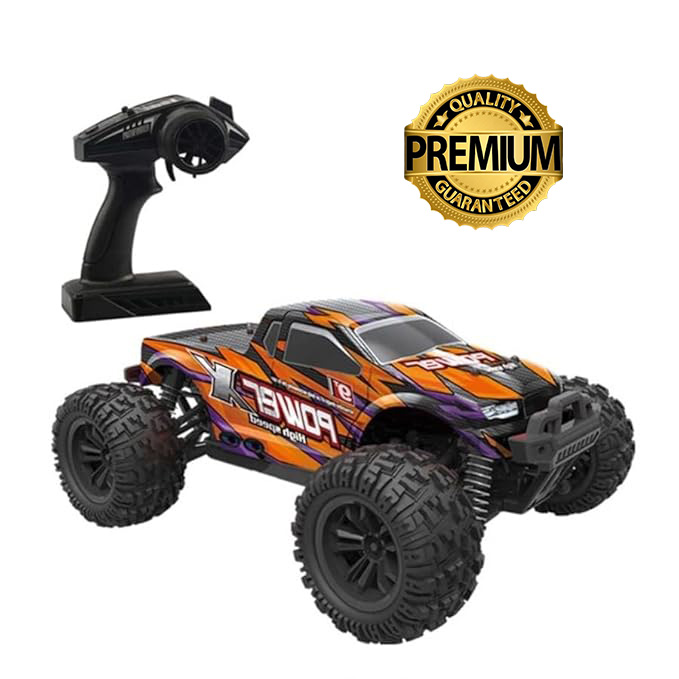 2.4GHz remote control technology ke sath aap long range par car ko smooth tareeke se control kar sakte hain, aur multiple cars ek saath race bhi kar sakte hain bina signal interfere huay. Powerful motor aur 4‑wheel drive system car ko 35 km/h tak ki top speed deta hai, jo is size ki RC car ke liye bohat fast hai.